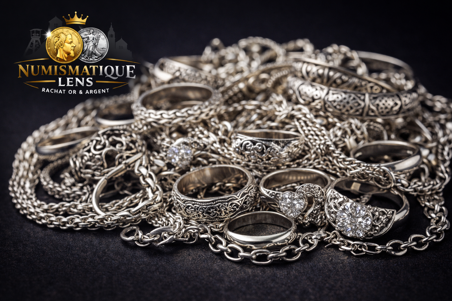 Contactez-nous dès aujourd’hui pour une estimation gratuite de vos bijoux en argent, même cassés ou sous forme de débris, ou venez directement à notre boutique à Lens. |