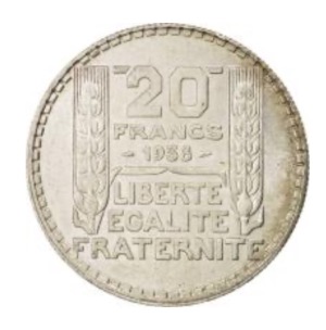 20 Francs Turin Argent 1929-1939 – Pièce Française - Numismatique Lens![]() ![]() La pièce de 20 Francs Turin en argent, frappée en France entre 1929 et 1939, s’inscrit dans le cadre de la réforme monétaire du franc Poincaré, officialisée en 1928. Son dessin résulte d’un concours national organisé par la Monnaie de Paris, destiné à renouveler l’iconographie des monnaies françaises de l’entre-deux-guerres. Gravée par Pierre Turin, dont la signature P. TURIN figure sur l’avers, cette monnaie se distingue par une esthétique sobre et symbolique, caractéristique du style de l’époque. Elle constitue le module supérieur du type Turin, complémentaire à la pièce de 10 Francs Turin. La 20 Francs Turin est composée d’un alliage d’argent titré à 680 ‰, pour un poids de 20,00 grammes et un diamètre de 35 mm. Sa frappe s’étend de 1929 à 1939, avec une quantité totale estimée à 51 600 000 exemplaires, ce qui en fait une monnaie largement diffusée mais toujours très appréciée des collectionneurs et investisseurs en argent. Avers : profil droit de Marianne, allégorie de la République, coiffée du bonnet phrygien orné d’une couronne de lauriers, entourée de la légende circulaire « République Française ». La signature du graveur P. Turin est visible. Revers : deux épis de blé stylisés encadrent verticalement la valeur faciale « 20 Francs ». Figurent également le millésime, les différents monétaires, ainsi que la devise républicaine disposée sur trois lignes : « Liberté – Égalité – Fraternité ». La tranche est striée, conformément aux standards monétaires de la période. Grâce à son contexte historique, son design Art déco et sa teneur en argent, la 20 Francs Turin 1929-1939 demeure une monnaie de référence de la numismatique française du XXᵉ siècle. Informations pratiques – Comptoir Numismatique-Lens Adresse : 41 rue Martin Luther King, Lens (62300), France Téléphone : 06/85/98/80/42 Horaires :