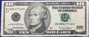 Valeur faciale : 10 dollars