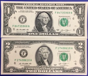 Valeur faciale : 1 et 2 dollars