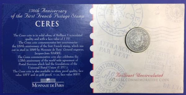 BU 1 Franc Cérès 1999 Anniversaire de la création du timbre poste Français