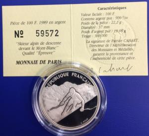 100 Francs JO Albertville 1992 Skieur alpin Monnaie de Paris
